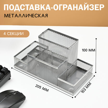 Органайзер-подставка для канцелярии, металл, цвет серебристый, 4 отделения