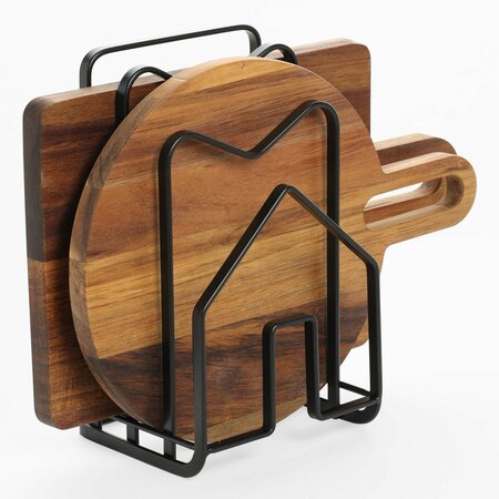 Подставка-органайзер для разделочных досок и крышек, 3 отделения. Размер: 21x12,5x11 см. Материал: железо с напылением. Подставка предназначена для компактного хранения разделочных досок и крышек. Рекомендации по уходу: мыть вручную с применением мягких моющих средств. Не использовать для ухода абразивные чистящие средства и жесткие губки. Нельзя мыть в посудомоечной машине.
