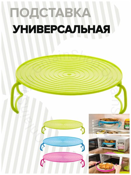 Назначение: для использования в СВЧ-печи, холодильнике, а также на любой кухонной поверхности в качестве изолирующего лотка Материал: пластик Максимальная температура нагрева: 120 °С Цвет: зеленый Диаметр: 235 мм Высота: 83 мм Подставка под тарелки / Подставка под блюда / Держатель под горячее / Органайзер / Подставка в микроволновку / Подставка в СВЧ