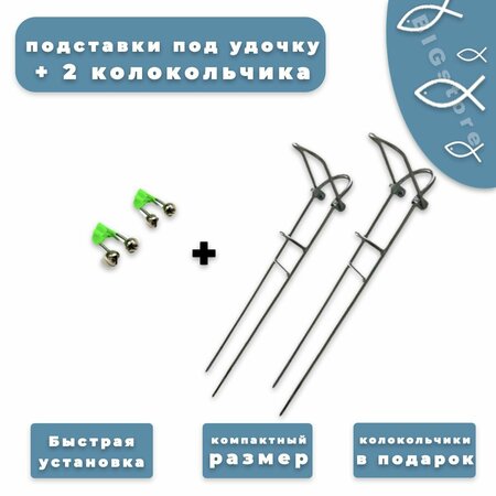 Подставка под удочку Г-образная 30 см, 2 шт+ 2 колокольчика