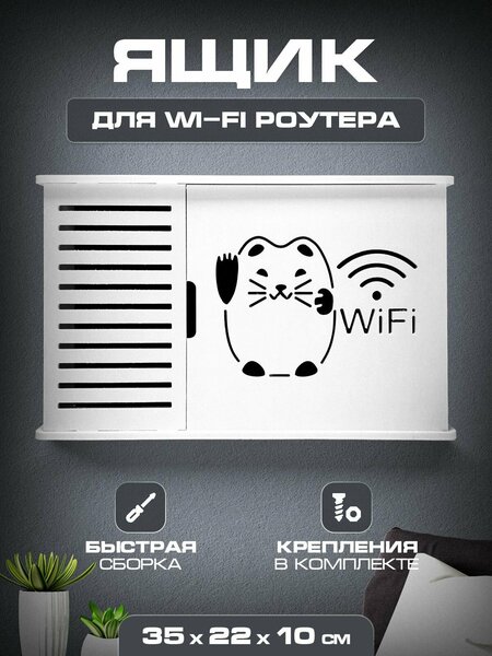 Универсальная декоративная закрытая полка для роутера позволяет придать уюта вашему дому, квартире или любому другому помещению, в котором расположен Wifi роутер и прочее оборудование, которое портит вид проводами. Обратите внимание, на главном фото товара указан внуренний размер изделия, что позволяет иметь представление, что в неё может поместиться. В нашем магазине Вы можете выбрать ящик для вай фай техники под любой размер и дизайн, т. к. мы постарались создать для вас разнообразие выбора. Короб для роутера выполнен из прочного и в то же время не ухудшающего сигнал вайфай материала ПВХ белого цвета, который подойдёт к любому дизайну и отлично впишется в интерьер жилого помещения. Полка для роутера на стену очень проста в сборке и установке. Комплектация содержит фурнитуру для сборки и крепления изделия на стену. Инструкция по сборке и креплению находится в каждом комплекте, что позволит легко собрать изделие и в любой момент иметь доступ к ней на случай переезда или других ситуаций. Подставка для роутера надежно упакована в защитную плёнку и коробку - товар придёт в целости и сохранности. Держатель для роутера будет одним из наилучших подарков на новоселье и другие праздники. Ведь в современном мире ни один дом не обходится без интернета. Позвольте себе и близким сделать дом не только современным, но и уютным с подставкой на стену для роутера. Настенная полка подойдет как полка для прихожей, гостиной, спальни, кухни, кабинета, коридора. В держатель для приставки, можно так же спрятать ресивер для телевизора, модем. Полочка подойдет как и в офис так и в дом, квартиру. Кронштейн органично вписывается в интерьер его можно установить в шкаф, на стену возле телевизора. Товар можно найти в следующих категориях коробка для wifi, полка под роутер настенная, полка настенная, полочки на стену, полка для книг, шкафчик настенный, металлическая коробка, полка в прихожую настенная.