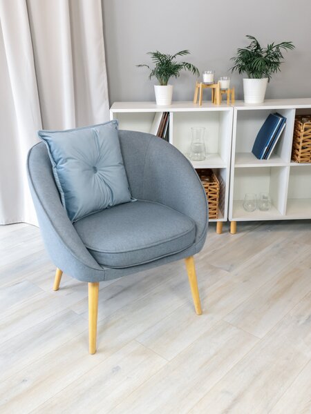 Подушка 45х45 бархат с пуговицей с отстрочкой, серо-голубой