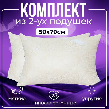 Подушка 50х70 см стеганая с наполнителем "Овечка" с чехлом из глосс-сатина