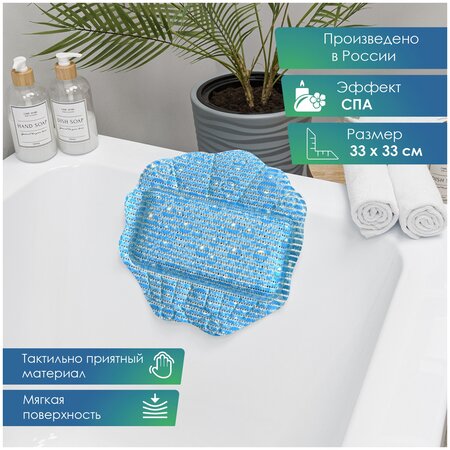 Подушка подголовник для ванны с присосками из вспененного ПВХ. 33х33 см голубая. От российского производителя товаров для дома - вилина. Расслабляющая ванна — один из лучших способов «смыть» стресс, которого в повседневной жизни хватает. Принять комфортное положение поможет подушка подголовник для ванны. Легкий массажный эффект Приятная на ощупь поверхность Надежное крепление за счет присосок Снятие напряжения с головы и шеи Эргономичная форма Высококачественные пигменты, рисунок не смывается водой Простота в уходе, допускается стирка при 40 градусах Высота подушки 2 см Возможно приобретение комплекта, ознакомьтесь с нашим ассортиментом вилина