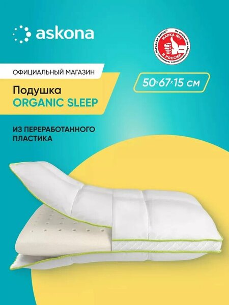 Расширенная гарантия 3 года при покупке с чехлом Askona. Наполнитель чехла - микрофибра, изготовленная из переработанных ПЭТ-бутылок. Съемный набивной чехол изготовлен из натурального хлопкового сатина. Благодаря бурлету с двойной окантовкой наполнитель сохраняет пышность и упругость. О товаре Анатомическая подушка Organic Sleep - комфорт с заботой о природе. Наша подушка из переработанных материалов – это прекрасный выбор для тех, кто заботится об окружающей среде. Мы гордимся экологически чистой продукцией и приглашаем вас присоединиться! С подушкой Organic Sleep Вы получите комфортный и уютный сон, не беспокоясь о своем вкладе в сохранение нашей планеты. Основа подушки - пена Air-visco с эффектом памяти - обеспечивает особый комфорт и поддержку, а перфорация на пене в виде отверстий придает дополнительную мягкость и улучшает циркуляцию воздуха. В технологии для обработки волокна ткани используется методология LCA . Методология LCA позволяет экономить энергию и сокращать выбросы CO2. Кроме того, волокно разрабатывается таким образом, чтобы быть более качественным и функциональным. ПЭТ-бутылки - один из немногих полимеров, которые можно перерабатывать. ПЭТ - это прозрачный, прочный и легкий пластик, который считается безопасным материалом для вторичной переработки. Вот несколько преимуществ переработки ПЭТ-бутылок: