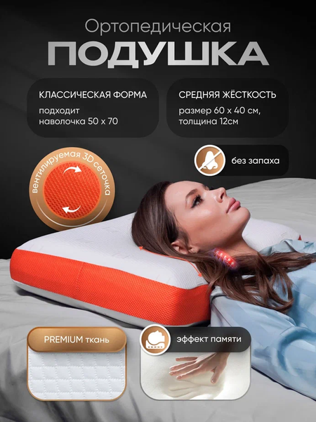 Ортопедическая подушка классической формы отлично подходит для сна на спине и на боку. Ортопедическая подушка для сна с эффектом памяти Memory Foam рекомендована ортопедами и медиками по всему миру.
