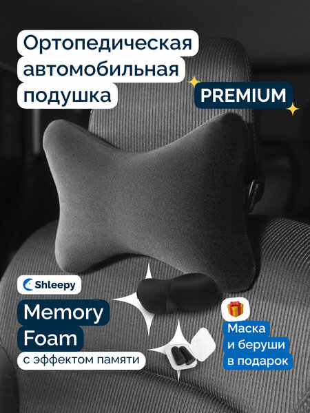 Автомобильная подушка удобно поддерживает голову и шею в правильном положении. Сделайте свою жизнь за рулем более комфортной и безопасной. Внутри нашей автомобильные подушки находится ортопедическая пена с эффектом памяти Memory Foam, подушка для автомобиля не деформируется и всегда возвращает свою форму даже после длительного сжатия. Ортопедическая подушка косточка имеет компактный и минималистичный дизайн, что делает аксессуар невероятно удобным. Вы будете брать ее с собой куда угодно: в самолет, поезд или даже использовать на домашнем кресле, кровати! Подушка для путешествий безупречно фиксирует и деликатно поддерживает голову и шею таким образом, что мышцы расслабляются, шея не перегибается, кровоснабжение не нарушается! Подушка для шеи так же фиксирует правильную осанку для всего позвоночника. Пена с эффектом памяти принимает форму вашего тела и сохраняет тепло, что способствует снятию напряжения мышц. Безупречно мягкий велюр премиального качества, первое прикосновение незабываемо, Вам нужно это попробовать что бы понять! Ткань безупречно пропускает воздух, Вы не почувствуете дискомфорта! Автомобильная подушка на подголовник подойдет абсолютно на любое кресло, плотный, но эластичный ремень позволяет легко зафиксировать, подушка для автомобиля крепится максимально уверенно! Ортопедическая подушка для сидения имеет широкий диапазон регулировок, часто наши клиенты покупают комплект на весь салон, включая заднее кресло! Подушка для авто включает в свой комплект: маска для сна 3D и беруши для сна в удобном футляре! Вы всегда сможете прекрасно выспаться в Вашем путешествии! Автомобильная подушка продается в красивой и практичной упаковке - сумка для хранения и переноски, потому она станет полезным и супер внимательным подарком для самых близких!