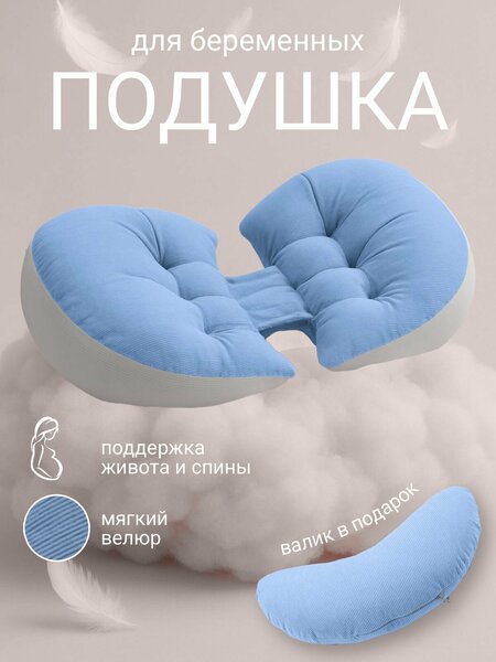 В зависимости от размера живота можно регулировать расстояние между подушечками, приятная ткань, красивый нежный голубой цвет, я стирала на деликатной стирке прям всю подушку, все отлично в итоге.