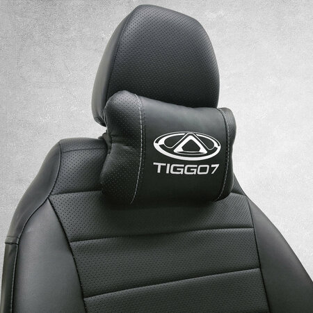 Подушка на подголовник автомобиля, под шею с логотипом Chery Tiggo 7. Тюнинг аксессуар для чери тигго 7.