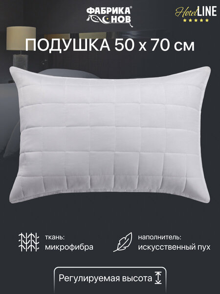 Подушка 50х70 из серии Hotel line была разработана высококвалифицированными технологами компании Фабрика Снов с учетом пожеланий и потребностей наших клиентов. Подушка подходит для сна на боку, животе, спине и имеет много преимуществ. Наполнитель – искусственный лебяжий пух, который по свойствам практически не отличается от натурального лебяжьего пуха, но при этом обладает преимуществами искусственных материалов; регулируемая высота и плотность подушки – молния на чехле позволяет убирать и добавлять наполнитель для достижения желаемой высоты и упругости, нужно просто вынуть часть наполнителя, а оставшийся равномерно распределите по периметру подушки; материал – микрофибра, несмотря на свою мягкость, имеет высокую плотность, а также устойчива к износу.