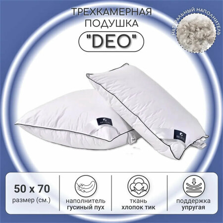 Трехкамерная подушка с упругой поддержкой поражает своей функциональностью. Внутренная камера наполнена пуховым пером 1 класса, что обеспечивает упругость, а внешние камеры наполнены серым гусиным пухом и создают особенную мягкость изделия. Такая подушка прекрасно держит форму и подарит вам полноценный отдых. Наполнитель: внешняя камера - пух "Экстра" 100% серый гусиный пух, внутренняя камера - пуховое перо 1 класса; Ткань: 100% хлопок (тик); Цвет: белый