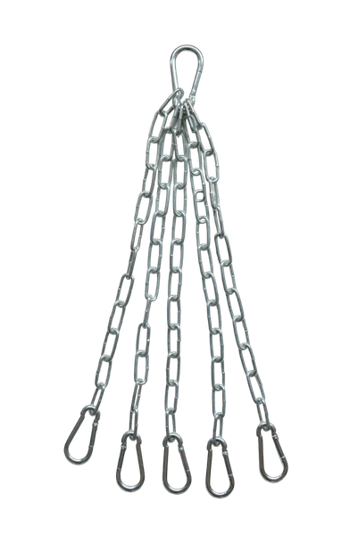Подвес для боксерского мешка от Rekoy - это надежный и удобный способ установки боксерской груши. Он состоит из пяти цепей по 38 сантиметров каждая. Подходит для любых боксерских груш с пятью местами для крепления. Размер карабинов на лучах 7х70 мм - рабочая нагрузка на карабин 180 кг, на потолке 8х80 мм - рабочая нагрузка 235 кг. Размер звена цепи 4х32 мм - разрывная нагрузка 600 кг.
