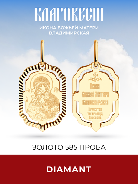 Золотая подвеска икона 585 пробы на шею, это классическое украшение выполненное по всем канонам православной церкви. Икона Божьей Матери Владимирская из золота это классическая подвеска, которая символизирует веру и духовность. Она станет не только выразительным украшением, но и неподвластным времени символом вашей веры. Подвеска из красного золота, благодаря этому украшение не потемнеет и будет обладать долгим сроком службы. Подвеска икона Diamant это ювелирное изделие, созданное с любовью и мастерством. Украшение привлекает внимание своим элегантным дизайном и прекрасной отделкой. Икона кулон золотая выглядит особенно изысканно и стильно на шее каждой женщины. Такая подвеска с изображением божией матери с лицевой стороны и гравировкой Пресвятая Богородица Спаси нас подойдет для женщин и отлично сочетается с любым образом. Более того, это отличный подарок на день рождения, 8 марта или юбилей для мамы, подруги или жены. Кулон икона это символ веры, надежды и любви. Носить подвеску из золота с ликом святых это не только модный тренд, но и способ выразить свои внутренние убеждения. Каждая икона становится уникальным символом, носящим в себе особый смысл. К тому же кулон подвеска для девочки и женщины Diamant приходит в комплекте с подарочной упаковкой, что делает ее готовым презентом для любого повода. Чтобы украшение радовало Вас своей красотой бесконечно долго, рекомендуем избегать попадания на него агрессивных химических и парфюмированных средств. Гарантийный срок для ювелирных изделий составляет 6 календарных месяцев, и исчисляется со дня передачи изделия потребителю.