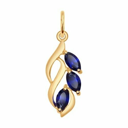 Вид изделия: Подвеска, Проба: Золото 585, Вставки: Корунд, Пол: Женский, Цвет: Синий, Средний вес: 0.57, Дополнительная информация:3 Корунда Синт. недраг Длина украшения - 2,4 см Ширина - 0,8 см Длина ушка - 0,3 см