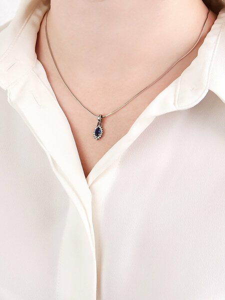 Подвеска серебряная со шпинель сапфиром и фианитами арт. 2736867/9шс. Обращаем внимание, что в карточках товаров мы указываем средний вес ювелирного украшения, по партии. Точный вес каждого отдельного изделия отражается на бирке - официальном сертификате производителя, который идет в комплекте. Вес ювелирных украшений на заводе Ювелир Карат определяется при помощи высокоточных ювелирных весов. Помимо этого, каждое изделие нашего производства проходит контроль государственной Пробирной Палаты и абсолютно точно соответствует заявленному составу и пробе: серебро 925, золото 585.