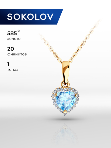 Золотая ювелирная подвеска кулон с топазом и фианитами от SOKOLOV, изготовленная из золота 585 пробы. Это изделие стало настоящим хитом среди женщин и девушек благодаря своей красоте и элегантности. Золотая подвеска кулон сердце идеально подходит для вечера или повседневного стиля. Дизайн подвески в виде сердца делает эту подвеску особенно привлекательной и значимой. Она станет отличным выбором для девушек и женщин всех возрастов. Подвеска выполнена из красного золота 585 пробы, это гарантирует стойкость и прочность изделия, придают ему блеск и яркость. Золотая подвеска кулон на шею это не только красивый аксессуар, но и отличный способ выразить свою индивидуальность и стиль. Она прекрасно дополнит ваш образ, добавит нежности и шарма. Это идеальный выбор как для повседневной носки, так и для особых случаев. Каждая женщина заслуживает быть в центре внимания, и эта женская золотая подвеска именно то, что нужно, чтобы привлечь восхищенные взгляды. Она удачно сочетается с различными стилями одежды. Это украшение