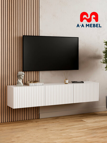 Тумба под телевизор глэйсер от А-A MEBEL станет оптимальным и сбалансированным решением, которая позволит не только разместить на ней телевизор, подставки для книг или декоративные элементы, но еще и послужить зоной для хранения. Тумба под ТВ в белом цвете в современном и оригинальном дизайне идеально подойдет для гостиной, спальни, детской, кухни, кабинета, а также для приемного зала в коммерческих помещениях, офисах, спа салонах или парикмахерских. Корпус изготовлен из прочного и качественного материала – ЛДСП (матовый, ламинированный), фасады изготовлены из МДФ (глянец). Этот материал обладает высокой прочностью и стойкостью, что делает мебель долговечной и надежной. В тумбе установлен механизм push-to-open, дверцы открываются от легкого нажатия на фасады. Она легко крепится к стене с помощью специальных креплений, которые входят в комплект. Удобная полка и оптимальная высота позволяют установить телевизор на комфортном уровне для просмотра. Благодаря просторным ящикам и оптимальной глубине, эта тумба способствует эффективной организации хранения разнообразных вещей. Настенная полка для телевизора – решение для тех, кто любит лаконичность и сдержанность в интерьере