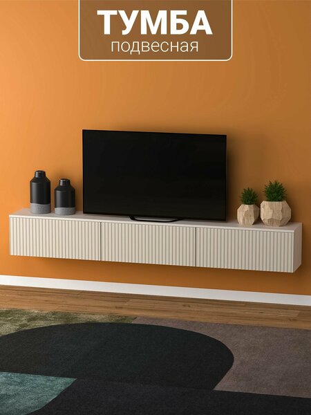 Подвесная тумба ТВ с МДФ фасадами: стиль и функциональность Стильная подвесная тумба под ТВ с фрезерованными МДФ фасадами и пленкой soft touch - эргономичная и современная, позволит оформить в гостиной современную зону для просмотра телевизора. Удобные откидные фасады для хранения мелочей. Стильное исполнение без ручек. Качественные металлические навесы в комплекте. Тумба выполнена в современных цветах, отлично впишется в минималистичный и современный интерьер. Подвесная тумба ТВ с МДФ фасадами: характеристики Ширина: 210 см Высота: 30 см Глубина: 30 см Материал корпуса: ЛДСП Материал фасада: МДФ Покрытие фасада: Матовое Покрытие корпуса: Матовое Покрытие корпуса: Ламинированное Вес: 35 кг Конструкция: подвесная Назначение: Для дома, для дачи, для бани Максимальная нагрузка: 60 кг Стиль: современный Особенности: Крепление к стене Цвет: белый Комплектация: Тумба под ТВ-2 (2100) - 1 шт Макс. нагрузка на полку ТВ, кг: 60 Макс. ширина ТВ, см: 190 Ориентация: Универсальный Тип открывания дверей: Откидные вниз Подвесная тумба ТВ с МДФ фасадами: преимущества Эргономичный дизайн: удобные откидные фасады для хранения мелочей Качественные материалы: корпус из ЛДСП и фасады из МДФ Стильное исполнение: без ручек и с матовым покрытием Простота установки: крепление к стене