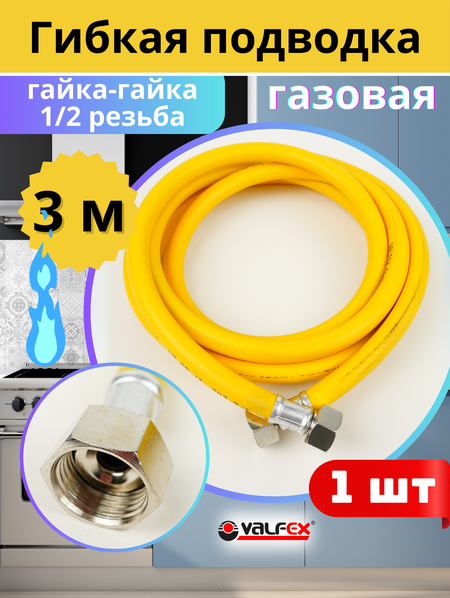 Подводка гибкая для газа 1/2х3м гайка-гайка, ПВХ с полиэфирной нитью (Valfex)