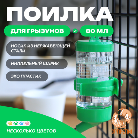 Поилка для грызунов OPTIPETINI, с креплением для клетки, зеленая, 80 мл