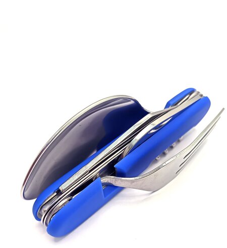 Разборной набор столовых приборов, которые разделяются на два предмета получая удобное сочетание вилка и ложка, вилка и нож. 7 элементов в 1 гаджете: вилка, большая ложка, нож, открывалка для бутылок, штопор, шило, открывалка для консервов. В сложенном виде имеет мизерные размеры и небольшой вес. Пригодится в походе, кемпинге на пикнике. Нержавеющая сталь. Прочный корпус. Длина лезвия - 6см. Длина с сложенном виде - 11 см. Матерчатый чехол на ремень Вес 169 гр. Очень удобный мультитул для поездок, командировок, турпоходов. Размеры ложки и вилки стандартные, сделано добротно, пользоваться удобно, столовая ложка и вилка расположены в разных половинах разъемной рукоятки ножа. Штопор рабочий, не перекалён, не сломается. Консервный нож комбинированный - для бутылок и жестяных банок. Весь функционал надёжно держится, ничего не болтается, выдвигается с некоторым усилием. Походный набор: ложка - вилка - нож. Назначение: Набор включает в себя столовые приборы необходимые в походах, пикниках, на рыбалке или на даче. В сложенном виде они почти не занимают места и поместятся даже в карман. Состоит из 2х частей собирающихся вместе Сделаны из качественной нержавеющей стали Складная конструкция, портативный дизайн. Пригодится в походе, на рыбалке и в пути.