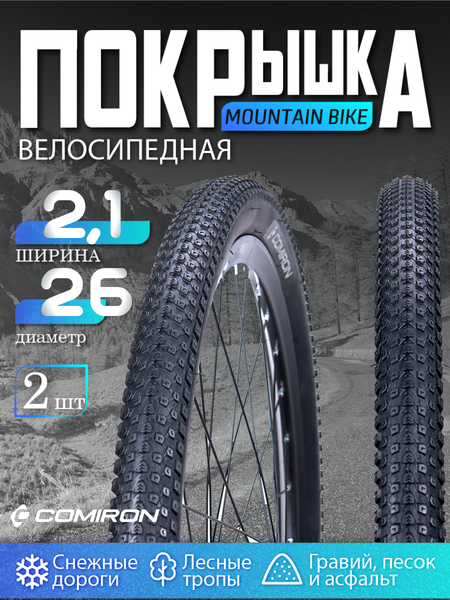 Покрышка наилучшим образом подходит для езды по земляным, травянистым и грязным скользким покрытиям. Увеличенное расстояние между выступами протектора позволяет резине эффективно самоочищаться. Мокрый грунт не застревает между выступами, увеличивая вес покрышки и ухудшая сцепление, а отлетает с поверхности покрышки в процессе движения. Вам не потребуется останавливаться и очищать протектор, если во время прогулки в лесу вам предстоит езда по мягким земляным поверхностям. Конусный рисунок центральной части протектора способствует уменьшению преждевременного износа покрышки и одновременно увеличивает эффективность торможения на грунтовых поверхностях. Характеристики: Размер дюймы: 26 х 2,1 Размер ISO: 54 х 559 мм Сезон: Трехсезонный Вес покрышки: 1,06 кг. Макс нагрузка: 130 кг Вид обода: одинарный Материал обода: сталь. Фабрика, на которой изготавливаются покрышки Comiron так же производит покрышки для самолётов гражданской авиации. Вы можете быть полностью уверены в том, что при изготовлении покрышек Comiron использованы только качественные технологии, материалы и сырье. Корд покрышки сплетён из толстых нитей, что в сочетании с дополнительным слоем резины на боковинах отлично защищает покрышку от боковых разрезов. Удачи на дорогах!