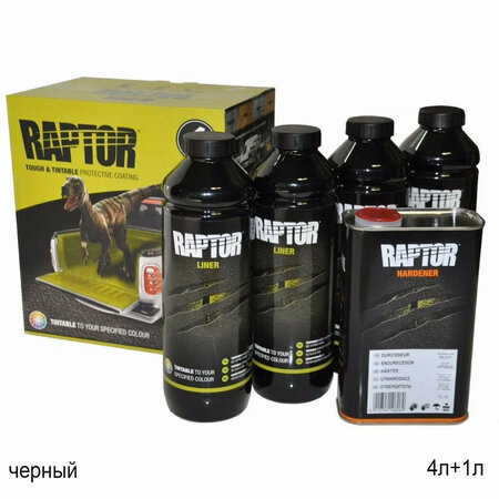Комплект защитного покрытия под пистолет сверхпрочный RAPTOR U-POL RLB/S4- двухкомпонентное уретановое защитное покрытие против ржавчины, коррозии, солей, плесени и экстремальных температур. Восстанавливает максимально изношенные поверхности. Образует поверхность повышенной прочности устойчивую к механическим повреждениям и ультрафиолетовому излучению. Обладает высокой адгезией, быстрым временем сушки, водоотталкивающими и шумоизоляционными свойствами. Наноситься с помощью антигравийного пистолета, валика или кисти для получения необходимой шагрени. Время сушки может регулироваться отвердителем. Материала данного комплекта достаточно для покрытия до 9-10 м2 ровной поверхности в один слой. RAPTOR - это очень прочная, долговечная защита кузова автомобиля! Это современный революционный материал для защиты кузова абсолютно любого автомобиля. Раптор идеально подходит для покраски машины к условиям бездорожья, 4х4 ралли-рейдов, эксплуатации в суровых условиях Российской зимы и еще более 100 различного рода применений в различных отраслях. Его сложно поцарапать, повредить, легко наносится, быстро сохнет. Предохраняет от любых механических воздействий. Уменьшает звук и вибрацию, может служить отличным шумо и вибро изоляционным материалом. 100% водостойкий после окончания полимеризации. Обладает высокой адгезией. Для покраски не требуется покрасочная камера или специализированные условия, нанести покрытие можно даже на улице на открытом воздухе, работает по технологии "Достаем из коробки - взбалтываем - наносим". Имеет длительный срок службы. Можно наносить как на старую краску автомобиля, так и на голый металл, вместо любого покрытия или краски. Цвет защитного покрытия RAPTOR - черный. Объем комплекта - 3,8л.