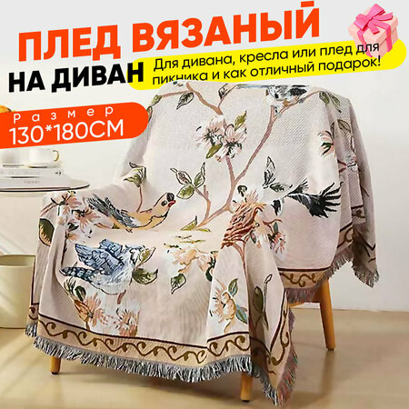 Покрывало на диван, плед для пикника, пляжное покрывало, плед хлопковый / полиэстер, современное покрывало для дивана в стиле INS с цветы и птицы, Утолщенное , размер 130X180