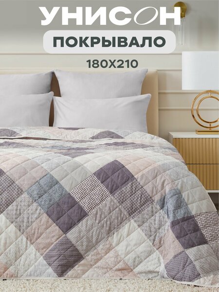 Уникальное стеганое покрывало на кровать 180х210 от бренда Унисон станет украшением вашего дома. Это двустороннее покрывало с окантовкой в цвет изделия, которое прекрасно дополнит ваш интерьер и создаст уютную атмосферу в вашей спальне или гостиной. Изготовленное из плотного хлопка (бязь) верхнее покрывало подарит приятное ощущение мягкости и комфорта. Наполнитель из полиэстера обеспечит дополнительную теплоизоляцию, делая это покрывало идеальным выбором для холодных зимних вечеров. Привлекательная стежка на покрывале придает ему особый шарм и стильный вид. Плед покрывало в размере 180х210 подойдет для 2 спальной или евро кровати, также его можно использовать как накидку на диван в гостиной. Плотная ткань отлично защитит постельное белье от загрязнений и внешнего воздействия. Покрывало из хлопка обладает высокой износостойкостью, легко в уходе и прослужит вам много лет. Рекомендации по уходу указаны на подарочной упаковке домашнего текстиля. Мы рекомендуем не превышать температуру стирки - 30С. Текстиль для дома станет отличным подарком маме, подруге, бабушке, ребенку, новоселье и день рождения. В рекомендациях к товару вы найдете еще больше постельных принадлежностей, которые помогут вам собрать полезный и красивый подарок на юбилей. Стеганое покрывало станет лучшим украшением спальни. Оригинальный праздничный сюрприз порадует любимого человека на 8 Марта. Эта идея подарка покорит взрослого человека с хорошим чувством стиля и согреет любое женское сердце. Прикольное покрывало — отличный подарочный вариант на любую особенную дату! Милый подарок осчастливит близких женщин: маму, бабушку или сестру. Девушка или подружка точно захотят получить эстетичный текстиль для дома. Сердца подруг, друзей и коллег будут растоплены творческой и полезной покупкой. Влюбленная пара также обрадуется такому сюрпризу! А еще его можно подарить родителям.