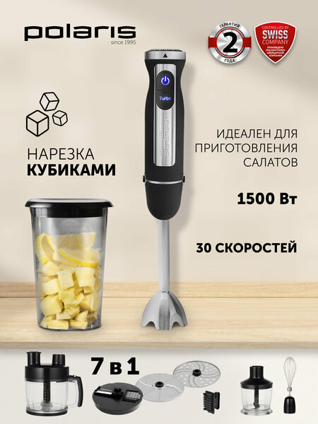 Ножи блендера 4 PRO TITAN с титановым покрытием работают в 2 раза эффективнее и сохраняют прочность и остроту на долгие годы. Технология PROtect+ двойная защита двигателя (от перегрева и перегрузки) обеспечивает надежность и долговечность. Мощность: 1500 Вт.7 в 1: блендер, миксер, насадка для резки кубиками, измельчитель 0.5 л, измельчитель 2 л, терка для драников, диск для нарезки ломтиками/шинковки. 30 скоростей с плавной регулировкой. Скоростной режим турбо. Ножи блендера 4 PRO TITAN. Насадка блендера из нержавеющей стали. Низкий уровень шума. Чаша измельчителя объемом 2 л. Чаша измельчителя объемом 0,5 л. Венчик для взбивания из нержавеющей стали. Мерный стакан с крышкой 0.6 л. Насадка для резки кубиками. Диск-мелкая терка. Диск для нарезки ломтиками/шинковки. Специальное приспособление для быстрой и легкой очистки.