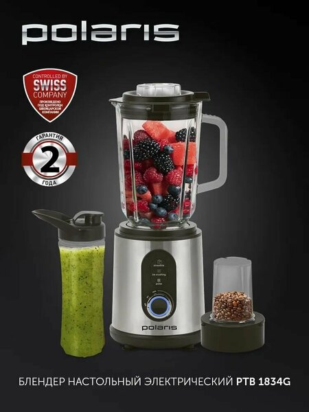 Блендер стационарный Polaris PTB 1834G Технология PROtect: защита двигателя от перегрева обеспечивает повышенную долговечность. Технология 6 PRO EXPERT: 6 острых лезвий вращаются одновременно в 3 плоскостях, что в сочетании с мощным мотором позволяет измельчать и смешивать ингредиенты в 2 раза быстрее. Съемный кувшин из высокопрочного стекла объемом 2 л (полезный объём 1,5 л). Двусторонняя шкала уровня наполнения. 2 авто - программы: смузи, колка льда. Импульсный режим. Плавная регулировка скорости. Стальной нож с 6 лезвиями. Специальное отверстие в крышке для добавления ингредиентов в процессе работы. Специальная форма ножей для эффективного перемешивания. Подходит для колки льда и приготовления смузи. Компактный мини-измельчитель для перемалывания зёрен кофе, приготовления небольших порций соусов, дробления орехов, измельчения пряных трав и овощей. Съемное дно кувшина для удобства очистки. Cъемная крышка. Прорезиненные нескользящие ножки. Удобен в применении и очиcтке.