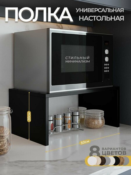 Настольная полка под микроволновую печь станет настоящим помощником для кухни, поскольку она не только решает проблему хранения, но и обеспечивает легкий доступ к необходимым принадлежностям. Благодаря продуманному дизайну, полка для кухни гармонично вписывается в любой интерьер, добавляя стиль и функциональность. Она обеспечивает возможность разместить не только микроволновку, но и другие приборы, сохраняя при этом порядок на рабочей поверхности. Удобное распределение пространства позволяет эффективно использовать каждый сантиметр, что особенно важно для малогабаритных кухонь. Дополнительные полки идеально подходят для хранения баночек с приправами и соусами, а также для аксессуаров, которые всегда должны быть под рукой. Таким образом, процесс готовки станет более комфортным и быстрым. Сочетание прочных материалов и современного дизайна гарантирует долговечность и надежность данного изделия. ЛДСП 16 мм, из которого изготовлена полка для кухни, обеспечивает стабильность и устойчивость даже при высокой нагрузке, что позволяет не переживать за сохранность техники. Полка для специй и свч — это не только удобство, но и элегантное решение в категории " все для кухни ". Размеры полки для принтера: ширина - 50 см, глубина - 29,5 см, высота 20 см. Кроме того, полка мебельная может служить не только практическим элементом, но и декоративным. На ней можно выставить не только бытовые приборы, но и элементы декора, книги, ноутбук, что придаст пространству больше уюта и стиля. Выбирая полку от "Философия уюта", вы выбираете качество, стиль и удобство для вашего дома.