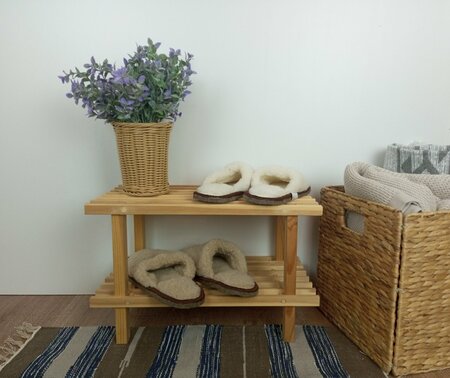 Полка для обуви мини бюндис BUNDIS: порядок и компактность Полка для обуви мини бюндис BUNDIS предлагает удобное и практичное решение для хранения обуви. С двумя полками, она обеспечивает достаточное пространство для размещения вашей обуви, не занимая при этом много места на полу. Полка изготовлена из массива сосны, что гарантирует ее прочность и долговечность. Благодаря этому материалу, полка обладает приятным натуральным цветом и текстурой, которые гармонично впишутся в любой интерьер. Полка имеет компактные размеры (ширина 47 см, глубина 26,5 см, высота 30 см) и легко устанавливается на полу. Вместимость полки составляет 4 пары обуви, что позволяет разместить обувь разных размеров и видов. Полка для обуви мини бюндис BUNDIS – это сочетание практичности, функциональности и стильного дизайна. Совместима с товарами Икеа Ikea/