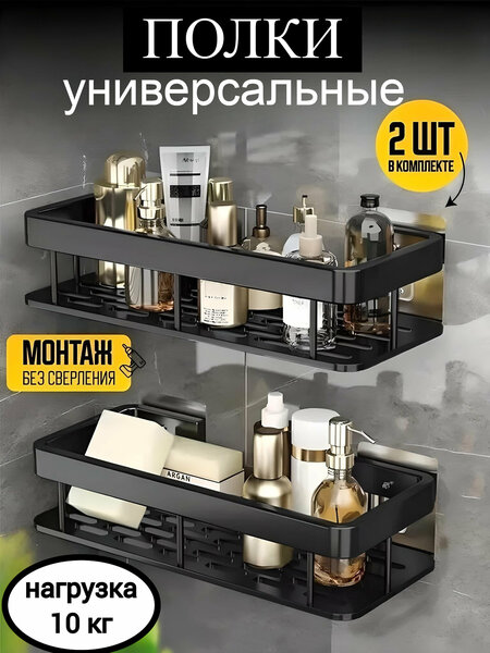 Полка для ванной! Вам больше не придется беспокоиться о том, куда положить ваши шампуни, гели для душа, мочалки или другие необходимые вещи, потому что с нашей самоклеящейся полкой для ванной и кухни вы сможете организовать их в одном месте и всегда иметь быстрый доступ к ним. Преимущества - Надежная клеевая основа - Прочное крепление - Высокие бортики - Безопасные закругленные края Прочность и долговечность Полка для ванной изготовлена из высококачественных материалов, которые обеспечивают прочность и долговечность. Она устойчива к воздействию влаги и не подвержена коррозии, что гарантирует долгий срок службы. Универсальность Полку можно использовать для хранения различных предметов, начиная от косметики и заканчивая полотенцами. Вы сможете разместить на ней все, что вам необходимо иметь под рукой в ванной комнате, кухне и туалете Подходит для большинства поверхностей Подходит для : - Плитки - Мрамора - Металла - Стекла - Зеркал - Дерева Установка - Обезжирьте поверхность - Вертикально зафиксируйте крепление к полке - Снимите защитную пленку с крепления - Приклейте полку к стене - Открутите гайки, снимите полку и сильно прижмите к стене - Через 30 минут установите полку и зафиксируйте