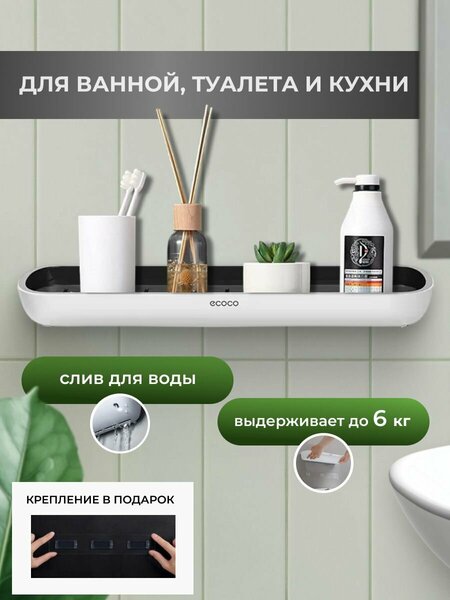Полка для ванной Ecoco: функциональность и стиль Представляем полку для ванной Ecoco – стильное и функциональное решение для хранения ваших принадлежностей. Простота установки и надежность крепления Самоклеющаяся основа полки обеспечивает надежное крепление к стене, а компактные размеры позволяют использовать ее даже в ограниченном пространстве. Удобная организация пространства С помощью полки Ecoco вы сможете удобно разместить зубные щетки, шампуни, мочалки и другие аксессуары. Ограничитель на полке предотвращает падение предметов и обеспечивает безопасность использования. Материал и размеры Полка изготовлена из прочного пластика, что гарантирует долговечность и надежность использования. Размеры полки составляют 12 см в высоту, 42 см в ширину и 5,5 см в глубину, что позволяет разместить на ней достаточное количество предметов. Комплектация и цвет В комплект поставки входит одна полка для хранения, клейкое крепление и упаковка. Полка доступна в белом и черном цвете, что позволяет гармонично вписаться в любой интерьер ванной комнаты. Выбирая полку для ванной Ecoco, вы получаете стильное, функциональное и надежное решение для хранения ваших принадлежностей.
