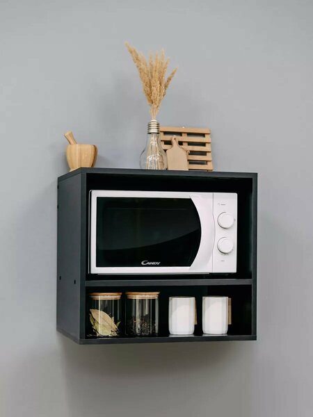 Настенная полка под микроволновую печь создана специально для микроволновок, она имеет полку для специй, что делает ее удобным решением для хранения кухонной техники и приправ на кухне. Удобная конструкция полки для СВЧ позволяет экономить место и поддерживать порядок в кухонной и столовой зоне. Эта навесная полка для кухни отличный вариант для тех, кто ценит удобство и функциональность в интерьере. Благодаря компактным размерам, подвесной стеллаж для микроволновки можно повесить над кухонным столом не занимая лишнего места. Благодаря 2 ярусам полка для СВЧ создает дополнительное место для хранения. На подставке можно разместить микроволновую печь, электрическую мини-печь и небольшой духовой шкаф, освободив тем самым пространство на кухне. Кроме того, полку можно использовать как подставку или тумбу под оргтехнику: принтер, сканер. Подставка предназначена для микроволновой печи высотой не более 30 см, шириной не более 50 см. Дополнительные полки позволят хранить различные специи, кухонные принадлежности и аксессуары, делая работу на кухне более удобной и эффективной. Полка для СВЧ станет незаменимым помощником для создания уюта и эстетичного хранения микроволновки и другой техники на кухне. Данную полку также можно использовать для хранения стеклянных баночек, солонки, сахарницы, перечницы и других продуктов. Этот функциональный и компактный элемент мебели является отличным помощником на кухне, позволяя удобно хранить и использовать кухонные приборы и декор. Изготовленная из качественного ЛДСП 16 мм, эта полка для микроволновки прочна и надежна. Внешние размеры: высота 48 см, ширина 53 см, глубина 40 см. Внутренние размеры ниши для микроволновки: высота 30 см, ширина 50 см, глубина 40 см. Внутренние размеры дополнительной полки для специй: высота 15 см, ширина 50 см, глубина 40 см.