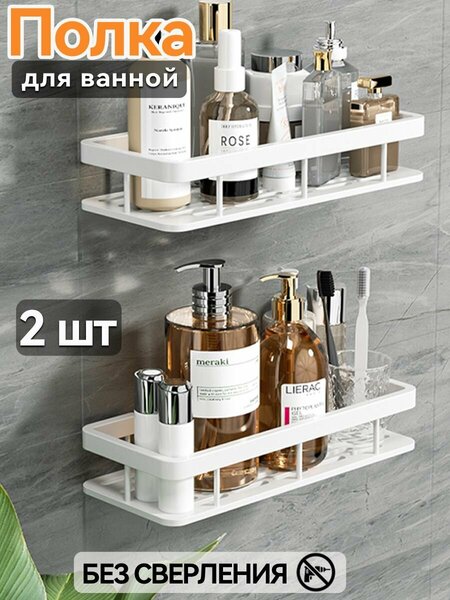 Полка для ванной без сверления универсальная стиль лофт - это удобный и функциональный аксессуар, который поможет организовать пространство в ванной комнате или на кухне. Полочка органайзер насченная не требует сверления и легко крепится на стену с помощью самоклеящихся липучек, которые идут в комплекте. Она идеально подходит для хранения разных мелочей или аксессуаров, косметики, посуды, игрушек. Полка для хранения ванных принадлежностей выполнена из прочного пластмассы и имеет белый цвет, что придает ей стильный и современный вид . Благодаря своей универсальности, подвесная полка может использоваться как в душевой кабине так и над раковиной, или как подставка под зеркало. Она также может быть использована на кухне для посуды или кухонных принадлежностей. Благодаря своим компактным размерам и удобному креплению, станет незаменимым помощником в поддержании порядка и создании уютного интерьера в вашем доме.