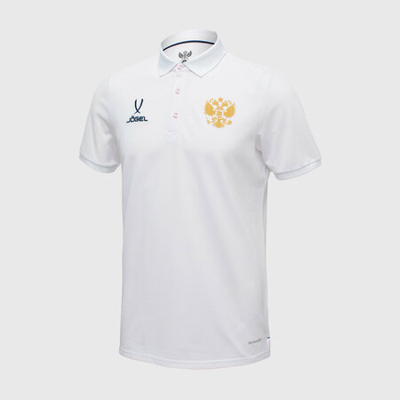 Белое поло Jogel сборной России по футболу. Модель представлена с классическим воротником на трех пуговицах. Поло выполнено из мягкого и тонкого материала высокого качества, что обеспечивает удобную посадку по фигуре. Кроме этого, технология PerFоrmDRY помогает воздуху циркулировать и выводить влагу на поверхность материала. Поло отлично сохраняет форму, а ткань не меняет оттенок после стирок. Данная модель отлично сочетается с шортами и спортивными брюками.