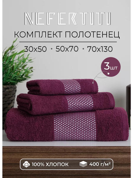 Комплект махровых полотенец "Идиллия" от NEFERTITI - это мягкие, нежные и приятные на ощупь полотенца. Они не толстые и не тонкие, обладают средней плотностью, что делает их идеальным вариантом для повседневного использования. Полотенца, благодаря своей структуре и короткому ворсу, отлично впитывают влагу и быстро сохнут на воздухе. Полотенца представлены в различных цветовых решениях, украшены бордюром в цвет основного тона, не линяют и не теряют цвет даже после многочисленных стирок. Махровые банные полотенца практичны в применении, идеально подходят для путешествий и домашнего использования, могут послужить отличным подарком для Ваших близких. Рекомендации по уходу и стирке: • перед использованием необходимо постирать полотенце, это поможет удалить заводскую пыль и ворс, которые остались в процессе производства; • стирка при температуре не выше 30 градусов; • деликатный режим или ручная стирка; • не используйте отбеливатели. Характеристики: • комплект 3 шт 30х50, 50х70, 70х130 (+/- 5см); • плотность 400гр/м2; • состав 100% хлопок; • гипоаллергенные. Желаем приятных покупок!