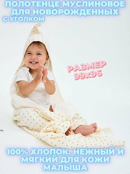 Полотенце муслиновое для новорожденных с капюшоном с уголком