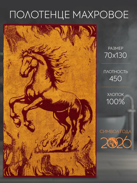 Полотенце Василиса банное 70х130 см, 1 шт, Лошадка, Символ года