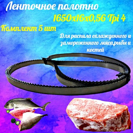 Полотно для ленточной пилы для резки мяса, рыбы и костей. Лента пильная, 1650х16х0,56 мм шаг зуба 4 TPI 5 штук