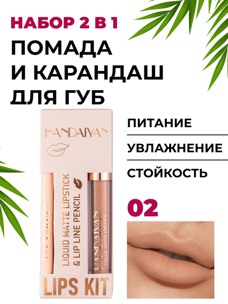 Помада и карандаш 2 в 1 - матовый, сатиновый, стойкий - набор для губ,02