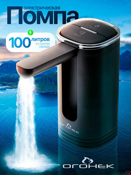 НЕ снимайте крышку(синюю/белую) С вашей бутылки, ОНА необходима для фиксации помпы на бутылке. Зарядите помпу перед использованием! Помпа для воды электрическая со складным носиком универсальная Огонёк OG-HOG10 - это незаменимый аксессуар для кулера, который позволяет легко и быстро набирать воду из бутылки. Эта электрическая помпа подходит для использования с различными бутылями ёмкостью от 5 до 19 литров. Носик помпы складывается, что обеспечивает удобство в использовании и удобное хранение. Благодаря своей универсальности, эта помпа может использоваться как дома, так и в офисе или на природе. Встроенный аккумулятор обеспечивает автономную работу помпы до 100 литров без подзарядки. Просто подключите помпу к бутылке и нажмите кнопку, чтобы начать набирать воду. Диспенсер для воды обеспечивает быструю и чистую подачу воды без необходимости переливания и проливания. Не нужно таскать тяжелые бутыли или использовать неудобные насосы. Просто установите помпу на бутыль и наслаждайтесь чистой и свежей водой прямо из бутыли. Мощность насоса: 5 Вт Время зарядки аккумулятора: до 3 часов Имеется индикатор заряда аккумулятора