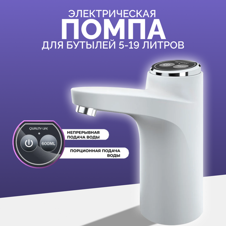 Инновационная электрическая помпа для воды идеально подходит для использования дома, в офисе, на отдыхе и на природе. Встроенный аккумулятор емкостью 1200 мАч обеспечивает мобильность и удобство использования без необходимости постоянного подключения к электрической сети. Основные особенности: Два режима работы: быстрый выход воды по нажатию одной кнопки и режим подачи воды объемом 600 мл для точной дозировки. Универсальность: помпа устанавливается поверх стандартной крышки 19-литровой бутыли и также подходит для 5- и 10-литровых бутылей. Высокое качество: изготовлена из прочного материала ABS и электронных компонентов. Благодаря своей мощности, функциональности и универсальности, данная электрическая помпа станет незаменимым помощником как в домашних условиях, так и в офисе, на отдыхе или на природе. Заряда аккумулятора хватает для многократного использования, обеспечивая свободу и мобильность.