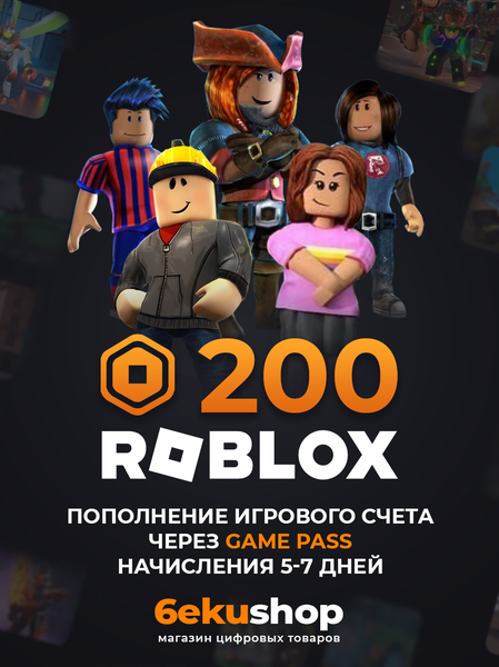 Приобретая Roblox Gift Card, вы получите инструкцию на почту — следуя ей, на ваш аккаунт будет начислена игровая валюта Robux. Передача Робаксов происходит через Game Pass (робуксы идут в течение 5-7 дней) - это обеспечивает одну из лучших цен на товар, а также такой способ безопасен для вашего аккаунта, ведь мы не просим пароль. Покрытие комиссии от роблокса на нас: вам приходит ровно то количество игровой валюты, которое вы и заказали. Товар совместим с аккаунтами всех регионов, включая Россию, Белоруссию и Казахстан. Робаксы позволяют покупать игровые предметы или подписки в Роблокс. Roblox карта пополнения Robux обеспечивает свободу в выборе использования для различных платформ, включая Android, iOS, ПК и Xbox. Подарочная карта Roblox.