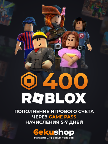 Пополнение счета Roblox на 400 Robux / Не код / Начисление происходит 5-7дн. через Game Pass / Роблокс Робакс Робукс