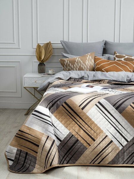 Покрывало на кровать 180х210 см Вселенная Текстиля ультрастеп двухстороннее коричнево-бежевое