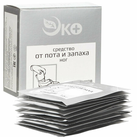 Порошок Эко для обуви: эффективное устранение запаха пота Экологически чистый продукт: порошок Эко для обуви изготовлен из натуральных компонентов, что делает его безопасным для использования и заботы о здоровье вашей обуви. Устранение неприятного запаха: порошок Эко эффективно борется с неприятными запахами, такими как пот, грязь и другие, обеспечивая свежесть и комфорт вашим ногам. Удобство использования: 10 пакетиков порошка Эко по 1,5 г каждый обеспечивают длительное использование, что позволяет вам всегда иметь под рукой средство для ухода за обувью. Выбирая порошок Эко для обуви, вы получаете эффективное и безопасное средство для ухода за своей обувью, которое поможет сохранить ее в отличном состоянии и обеспечит комфорт вашим ногам на протяжении всего дня.