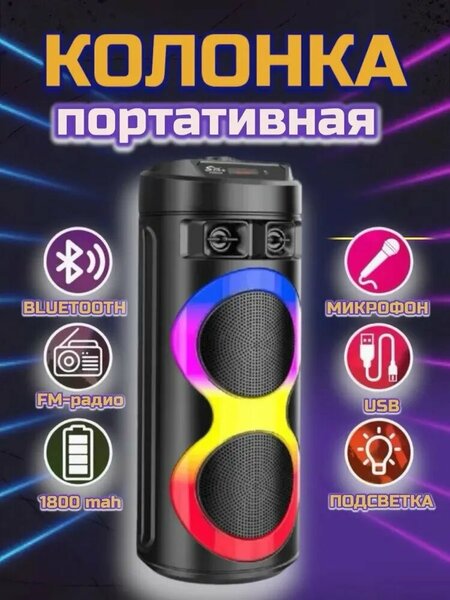 Портативная акустическая система ZQS-6220 представляет собой беспроводную акустическую систему с подсветкой и караоке-системой с микрофоном. Эта колонка для своего размера обеспечивает мощный звук, удобство подключения и управления, автономность, подсветку и караоке-систему с микрофоном. Мощные динамики и глубокие басы: колонка для своего размера оснащена мощными динамиками, которые обеспечивают прекрасное качество звучания и глубокие басы. Суммарная мощность составляет 20 Вт, что гарантирует насыщенное и чистое звучание. Bluetooth 5.0 и удобство подключения: благодаря функции Bluetooth 5.0, вы можете легко подключить свой смартфон, планшет или ноутбук и наслаждаться любимой музыкой сразу же. Портативный дизайн и автономность: наслаждайтесь музыкой до 8 часов без перерыва благодаря встроенному аккумулятору емкостью 3000 мАч. Подсветка и караоке-система с микрофоном: беспроводная колонка оснащена подсветкой, которая добавляет особый эффект и создает атмосферу праздника. Караоке-система с микрофоном позволяет вам почувствовать себя настоящей звездой и проводить незабываемые караоке-вечера с друзьями или семьей. Поддержка microSD и пульт ДУ: колонка поддерживает карты памяти microSD, что позволяет вам наслаждаться любимой музыкой без ограничений. Пульт дистанционного управления делает использование колонки еще более удобным и простым. Выбирая портативную акустическую систему, вы получаете мощный звук, удобство подключения и управления, автономность, подсветку и караоке-систему с микрофоном. Наслаждайтесь любимой музыкой без границ с этой мощной и портативной колонкой.